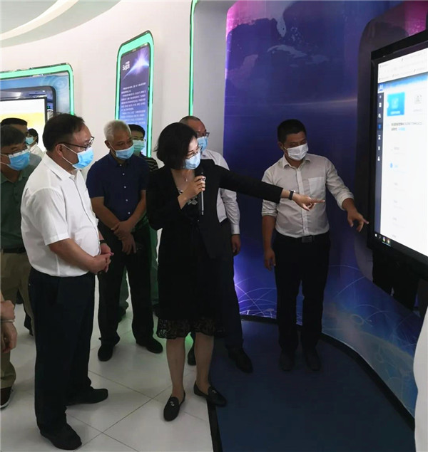 ▲曹坤华听取广西中科曙光云计算有限公司负责人介绍贵港智慧城市建设项目情况