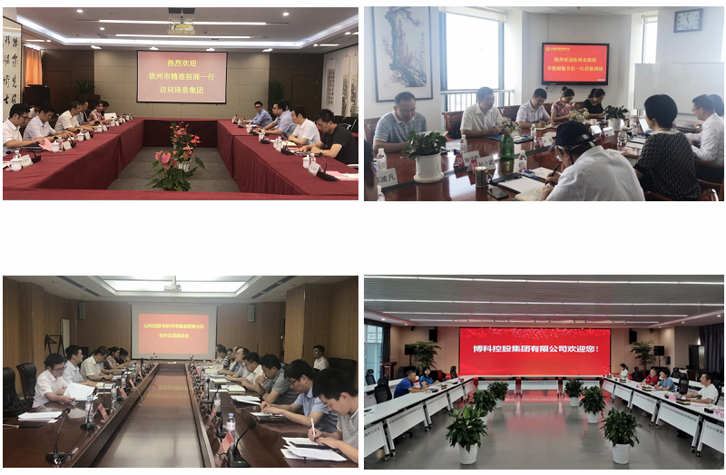 ▲钦州小分队与济南琦泉生物质发电有限公司座谈(上左)、与山东胜利股份有限公司座谈(上右)、与山科控股集团座谈(下左),北海小分队与山东博科控股集团座谈(下右)