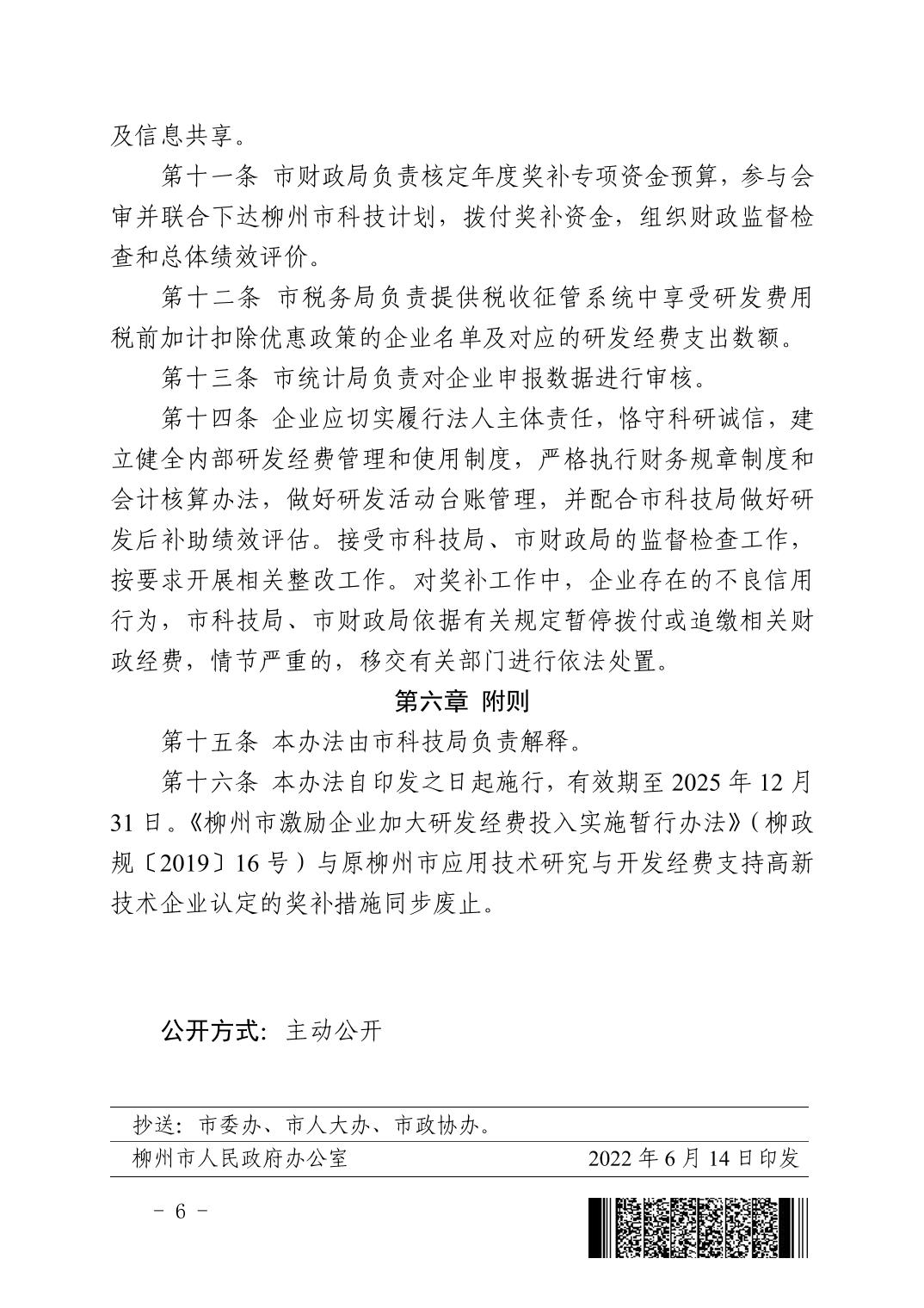柳政规〔2022〕11号关于印发《柳州市激励企业加大研发经费投入实施办法》的通知