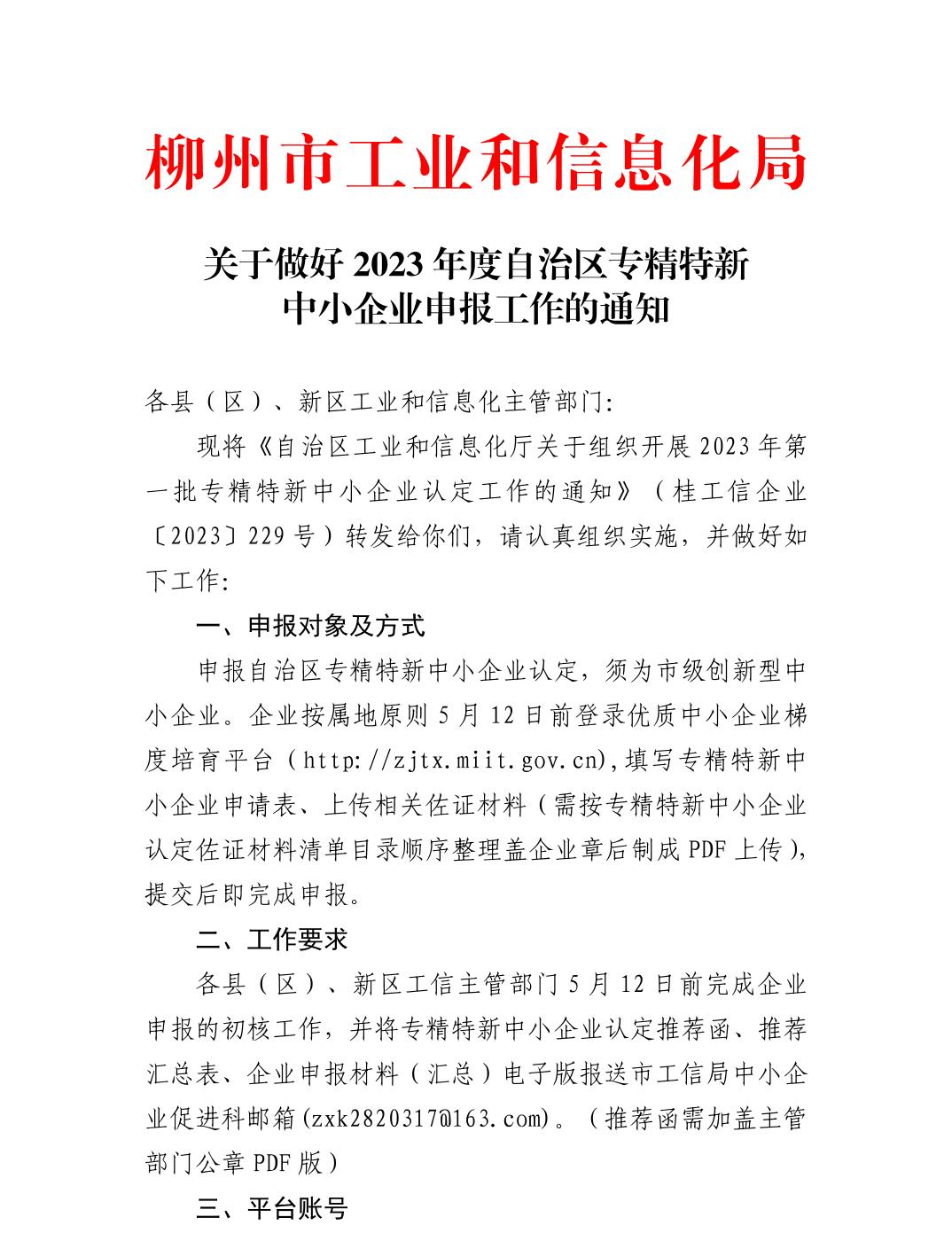 关于做好2023年度自治区专精特新中小企业申报工作的通知
